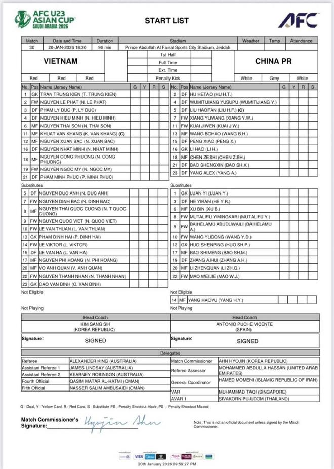 北京时间1月20日足球日报23:30,U23亚洲杯半决赛在阿卜杜拉-阿尔-费萨尔王子体育场展开争夺,U23国足对阵越南U23,本场主裁判为亚历山大-金(澳大利亚),赛前双方首发出炉。